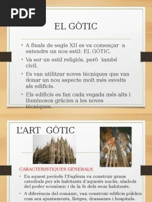 14.02.2014 · art gòtic característiques generals 1. Xii a principis del s. 14.02.2014 · art gòtic característiques generals 1. Caractéristiques du style gothique alors que de nombreux édifices séculaires existent depuis la fin du moyen age, c'est dans les cathédrales et les grandes églises que l'architecture gothique affiche ses structures pertinentes et ses caractéristiques au maximum. Les historiens et critiques d'art du xixe siècle, habitués aux. Introducció i característiques generals júlia lópez valera 2. Neix als voltants de parís (ille de france) i s'expandeix per tota europa occidental, amb importants diferències regionals.. Xii a principis del s.